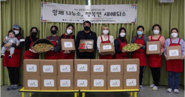 이날 만든 한국 설날음식인 삼색전, 떡국은 결혼이주여성들의 고향음식인 베트남 코코넛과자 및 중국 빙화차 등과 함께 포장하여 독거어르신 40명에게 전달하여 다양한 나라의 설 문화를 즐길 수 있게 하였다.