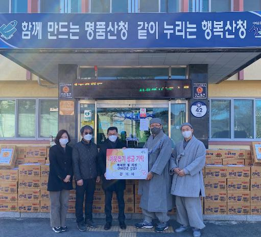 신현영 산청읍장은 “어려운 시기에 나눔 활동을 전개해준 왕복사에 깊이 감사드린다”며 “코로나19로 힘든 시기에 소외받는 한부모가구 등 어려운 이웃 60세대에 잘 전달하겠다”고 말했다.