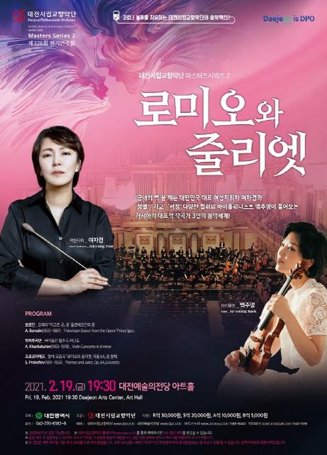 [한국연예축제일보, 이순례기자] 대전시립교향악단은 오는 19일 저녁, 마스터즈시리즈 2 ‘로미오와 줄리엣’을 연주 한다. 객원지휘 여자경의 지휘와 바이올리니스트 백주영의 협연으로 러시아를 대표하는 3인의 작곡가 보로딘, 하차투리안, 프로코피에프의 작품을 연주 할 예정이다.