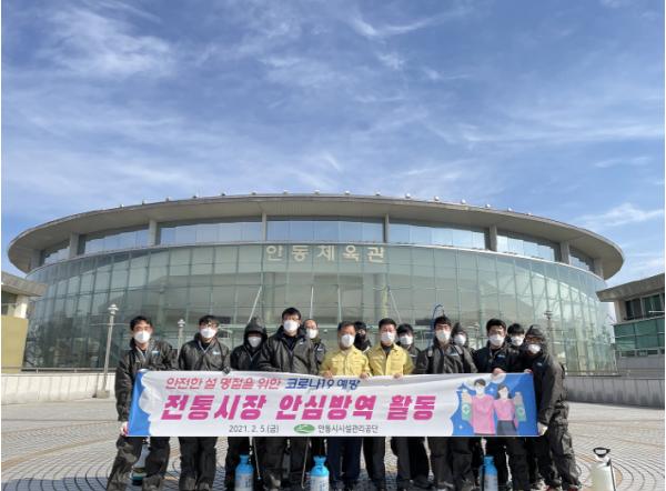 안동시시설관리공단(이사장 권석순)은 2월 5일 코로나19 확산방지와 시민들의 안전한 장보기 활동 지원을 위한 설 명절 대비 전통시장 특별방역을 실시했다.
