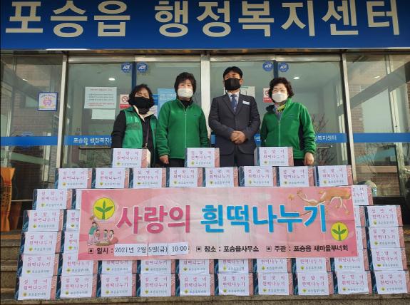 [한국연예축제일보, 유혜경기자] 평택시 포승읍 새마을부녀회(회장 김유순)는 지난 5일 포승읍행정복지센터에서 설맞이 흰떡 나눔 행사를 진행했다.