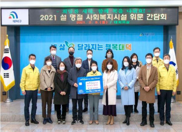 [한국연예축제일보, 유혜경기자] 대전 대덕구는 8일 구청에서 설 명절을 앞두고 소외된 사회복지생활시설에 대한 위문과 코로나19로 인한 시설 운영상 애로사항을 청취하기 위한 간담회를 가졌다.