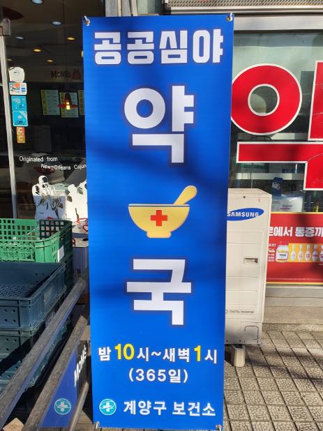 계양구 공공심야약국으로 지정된 약국은 계산동의 고려원약국(경명대로 1074), 용종동의 센타약국(계산새로 93)이다. 공공심야약국은 365일, 밤 10시부터 다음날 새벽 1시까지 운영해 심야시간의 의약품 조제, 판매, 복약지도, 약물상담 등을 한다.