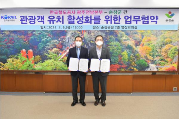 이번 업무협약식에는 황숙주 순창군수를 비롯해 광주전남본부 장영철 본부장 등이 참석했다. 이번 협약으로 양 기관은 ▲ 철도 관광상품 개발 ▲ 관광지 교통편의 제공 ▲ 관광상품 공동 홍보 등에 적극 협력키로 했다.