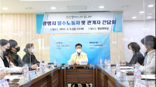 시는 지난해 12월 ‘광명시 필수노동자 보호 및 지원에 관한 조례’를 제정했으며 구체적 지원책 마련에 앞서 현장의 의견을 듣고자 5일 시청 영상회의실에서 필수노동자와의 간담회를 열었다.