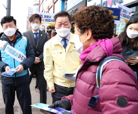 박승원 광명시장은 광명사거리역에서 지나가는 시민들에게 설 명절 이동 멈춤, 사회적거리두기, 5인 이상 사적모임 금지, 마스크 착용 등 방역수칙을 준수 해 줄 것을 당부했다.