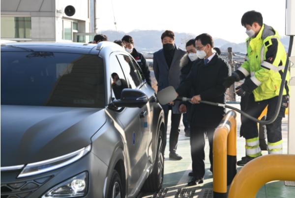 수소충전소는 연중 오전 5시 30분부터 오후 11시까지 운영하고 1kg당 8천250원(약 100㎞ 주행)에 수소를 판매한다.