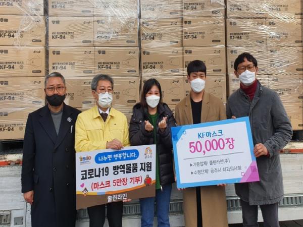 기탁 받은 물품은 공주시보건소 7만장을 비롯해 공주시 의사협회, 치과의사협회, 기자협회, 외식업중앙회공주시지부, 공주의료원 등에 전달될 예정이다.