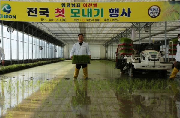 이천시가 호법농협과 함께 개최한 이날 행사는 다른 지역의 모내기 시기에 비해 3개월 가량 앞서는데, 이천 광역쓰레기소각장에서 나오는 폐열을 활용하여 겨울철 모내기가 가능해진 상황이다.