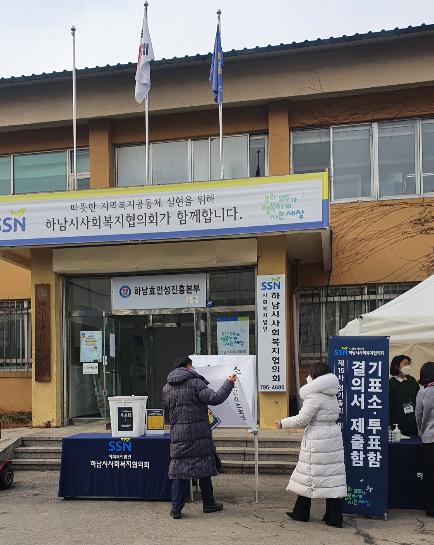[한국연예축제일보, 유혜경기자] 지난 2월 5일 하남시사회복지협의회(회장 유희선)는 제15차 정기총회 및 제6대회장 선거를 푸드뱅크 앞 광장에서 워크&드라이브 쓰루(Drive&Walk Through) 방식으로 진행했다.