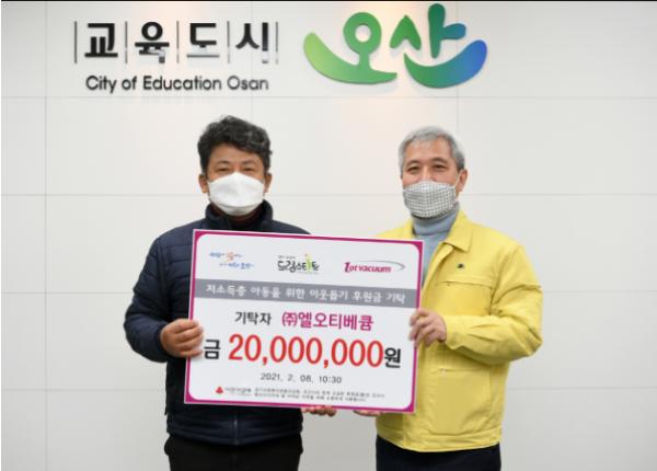 ㈜엘오티베큠(대표이사 오흥식)이 지난 8일 오산시청을 방문해 드림스타트 저소득 가정 아동 교육비와 의료비 지원을 위한 2천만 원의 후원금을 전달했다.
