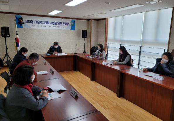 이날 컨설팅에서는 박수정 강사(에듀플랜 대표)가 초빙되었고 세마동 지역사회보장협의체 위원 등 10여명이 참여하여, 마을복지계획 수립에 필요한 주민들의 복지욕구 설문조사 실시 결과를 토대로 향후 계획수립에 방향을 설정하는 시간을 가졌다. 총 5회 중 4회의 컨설팅이 완료되었으며 이를 통해 체계적인 마을복지계획을 수립할 것으로 기대된다.