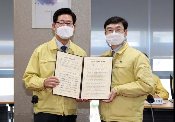 김하균 기획조정실장은 정부예산 확보 및 가시적 도정성과 창출 등 2건을, 이정구 재난안전실장은 재난위험시설 및 재해예방 사업 선제적 대응을 약속했다.