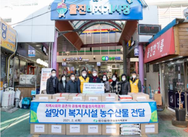 또한 한울본부는 지난 2월 4일 울진군 관내 8개 복지시설에는 울진바지게시장에서 구입한 600만 원 상당의 지역농수산물을, 북면·죽변면 거주 350여 어려운 가정에는 700만원 상당의 지역 특산품을 전함으로써 지역경제 활성화에 앞장서는 동시에 관내 취약계층에 이웃사랑을 실천했다.