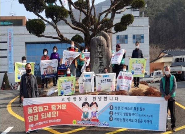 [한국연예축제일보, 유혜경기자] 합천군청덕면 새마을 협의회(회장 이우석)와 새마을 부녀회(회장 이정란)는 지난 8일 청덕면사무소 앞에서 면민들을 대상으로 민족 대명절 설을 맞이하여 방역수칙 준수를 통한 안전한 설 명절 보내기 캠페인을 전개했다.