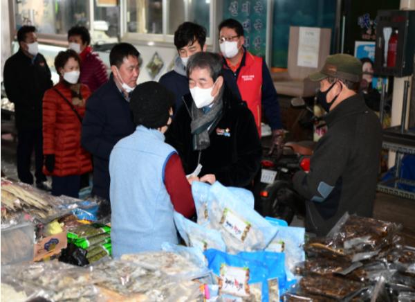 김충섭 시장은 장보기에 앞서 “최근 코로나19로 온라인 쇼핑, 비대면 구매행위가 많아져 상대적으로 전통시장은 눈에 띄게 침체되어 있어 힘들어 하고 있는 상인들의 모습을 외면할 수 없다”며 “코로나19로 시민의 안전과 생명이 중요하지만 이번 설 명절 장보기 만큼은 직접 전통시장을 방문해 상인들에게 힘을 주고 조금이나마 보탬이 되었으면 하는 바람”이라고 밝혔다.