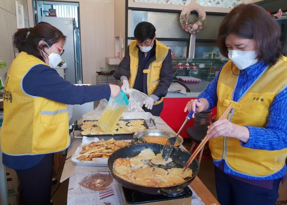 이날 지역사회보장협의체 위원들은 코로나19 방역수칙을 준수하면서 불고기, 전, 잡채 등을 정성껏 요리하여 떡국 떡, 만두, 김치와 함께 사랑의 꾸러미를 만들어 36가정에 전달했다.