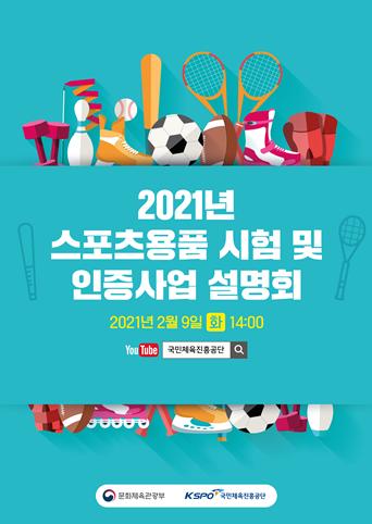 [한국연예축제일보, 나봉진기자] 문화체육관광부는 국민체육진흥공단(이사장 조재기)과 함께 2월 9일 오후 2시 '2021년 스포츠용품 시험 및 인증사업' 온라인 설명회를 개최한다고 밝혔다.