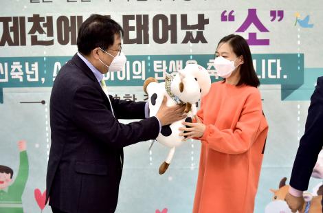 시는 출산자금지원 첫 번째·두 번째 대상 가구가 연이어 발생함에 따라, 선정을 축하하기 위해 봉양읍 행정복지센터와 화산동 행정복지센터에서 신축년 출생기념 선물(제천에서 태어났“소”)을 전달하며, 새 생명 탄생의 기쁨을 다시 한 번 나누었다.