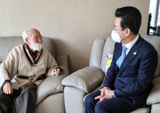 [한국연예축제일보, 김화일기자] 허태정 대전시장은 설 명절을 맞아 8일 정완진(94세, 경북 김천 출생) 애국지사의 자택을 방문해 위문품을 전달하고 감사와 존경의 마음을 전했다.