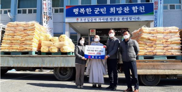 [한국연예축제일보, 유혜경기자] 합천군 가야면 소재 대한불교 조계종 해인사에서는 설 명절을 맞아 백미 350포(10kg)를 기증했다.