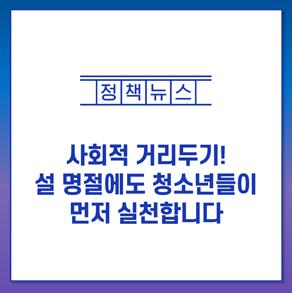 [한국연예축제일보, 유혜경기자] 여성가족부는 “사회적 거리두기! 청소년들이 먼저 실천합니다”라는 메시지 아래 “코로나19 상황에서 솔선하여 설 명절을 슬기롭게 보내는 청소년 집콕생활”을 주제로 청소년 사회적 거리두기 캠페인을 진행한다.