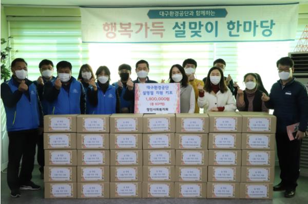 대구환경공단(이사장 정상용)은 8일에 민족 최대의 명절인 설을 맞이하여 도움의 손길이 필요한 소외계층이 따뜻한 명절을 보낼 수 있도록 성금을 기부하는 등 다양한 사회공헌 활동을 펼쳐 지역 공기업으로서의 역할을 다하고 있다.