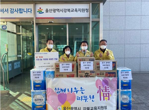 [한국연예축제일보, 서병진기자] 울산강북교육지원청은 설 명절을 맞아 동구 장애인보호작업장(시설장 허재원)에 위문품을 전달하며 따뜻한 마음을 함께 나누었다고 5일 밝혔다.