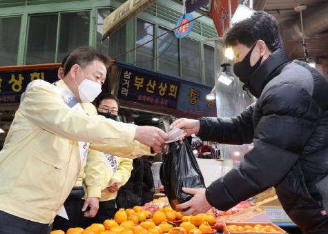 전통시장 방문에 이어 박 시장은 취약계층 가정을 방문해 설 명절 인사를 전하고 코로나19로 더욱 힘들게 생활하는 시민을 따뜻이 격려했다.