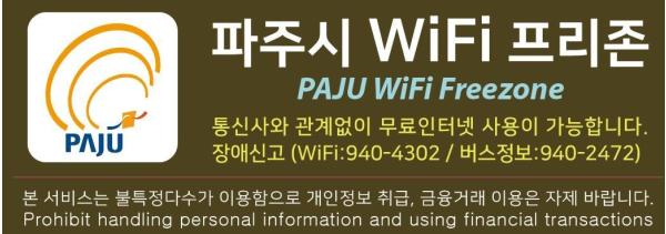 이치선 파주시 정보통신과장은 “무료 와이파이를 구축을 통해 시민들의 통신비를 절감하는 한편, 정보이용환경을 개선해 나갈 것”이라며 “자체구축, 공모사업, 민간협약 등 다각적인 사업을 통해 현재 310개소에 무료 와이파이를 구축해 운영 중이며 앞으로도 빅데이터 분석으로 시민들이 편의를 체감할 수 있는 장소를 적극 발굴해 나가겠다”라고 말했다.