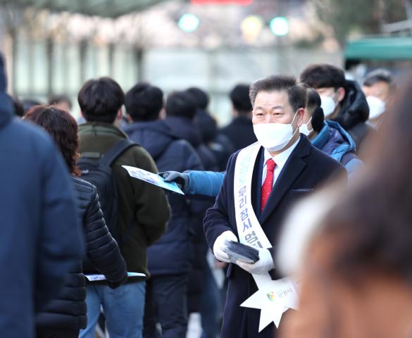 [한국연예축제일보, 유혜경기자] 박승원 광명시장은 9일 이른 아침 철산역에서 ‘설 명절 방역수칙 준수 거리 캠페인’을 벌여 시민들에게 안전한 명절 보내기를 당부하고 설 명절 인사도 함께 전했다.