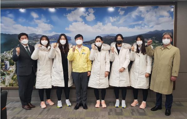 거제시청씨름단 소속 여자 천하장사 이다현 선수는 8일 거제시청에서 선수단을 대표하여 변광용 시장에게 ‘2021 설날장사씨름대회’출전을 신고하고 우승을 향한 당찬 출사표를 던졌다.