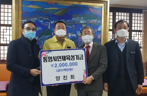 [한국연예축제일보, 유혜경기자] 통영시에서는 양친회에서 지난 2월 5일(금) 설날 명절을 앞두고 통영시청을 방문하여 인재육성기금 200만원을 기탁하였다고 밝혔다.