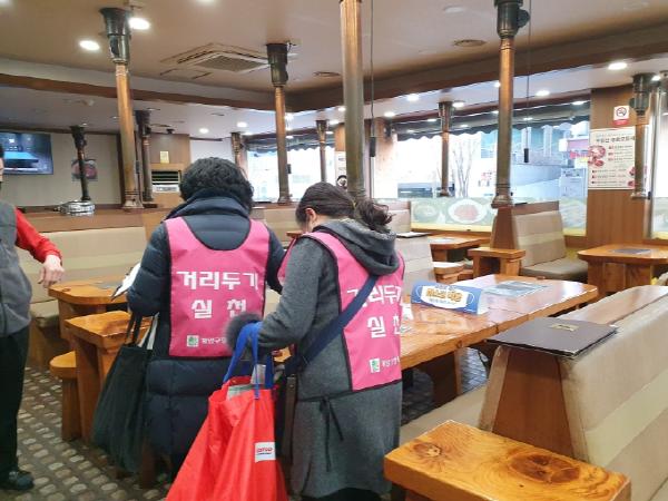 최근 수도권을 중심으로 코로나19 확진환자가 지속적으로 발생하는 상황에서 개인 방역의 중요성을 강조하기 위해 진행했다. 구청 직원, 소비자 식품위생감시원 등이 3~4인으로 분산해 음식점?카페 영업주, 종사자, 이용자 등에게 방역수칙 리플릿, 홍보물 등을 배부하고 방역수칙 실천을 독려했다.