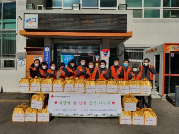 지역사회보장협의체 위원들은 3조로 나뉘어 양념갈비 및 떡국 떡, 만두 등 명절 음식 꾸러미를 20세대에 직접 전달했으며, 코로나19 예방을 위해 비대면 방식으로 문 앞에 꾸러미를 전달했다.