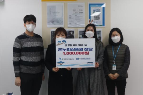 이날 전달받은 온누리상품권은 설 선물세트를 구입해 생활 안정에 도움이 필요한 복지사각지대 홀몸 어르신 50명에게 전달할 예정이다.