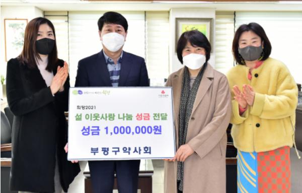 이날 기탁된 성금은 인천사회복지공동모금회를 통해 부평구 저소득가정을 위한 지역복지사업비로 사용될 예정이다.