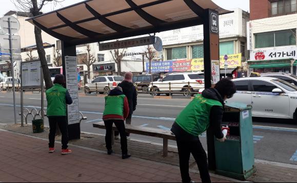 또한, 새마을지도자협의회 회원들은 버스 승강장 및 시설물에 대한 소독을 실시하며 힘을 보탰다.