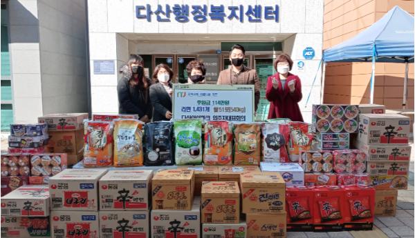 이번 후원금은 다산1동 지역사회보장협의체로 지정 기탁되어 저소득 아동들의 최적화된 온라인 학습환경을 위한 스마트 공부방 조성사업에 의미있게 이용될 예정이며, 함께 기부된 쌀 51포(540kg)와 라면(1,031개), 컵라면(400개) 등은 서부희망케어센터로 기탁되어 취약계층 가정에 적시에 전달될 예정이다.