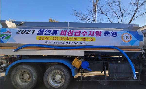 또한, 설 연휴기간(2월 11일 ∼ 14일)에는 공무원, 상하수도 대행업체 및 협력업체와 비상연락망을 구축하고, 설 연휴기간 수도사업소 내 기동수리반을 편성, 24시간 비상체계를 유지하며, 비상급수용 차량을 사전 확보하여 급수사고 발생 시 신속 대응으로 주민 불편사항을 최소화한다는 방침이다.