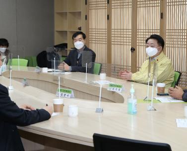 이 자리에서 한 시장은 기업체의 코로나19 방역수칙인 방역관리 책임자 지정, 시설별 주기적 방역소독 실시, 설 연휴 사회적 거리두기 2단계 협조, 코로나19 확진자 발생 시 대응방안 등에 대해 협조를 부탁했다.