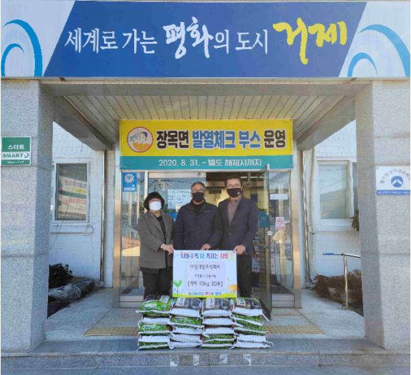 [한국연예축제일보, 유혜경기자] 태성개발주식회사에서 8일 장목면사무소를 방문하여 백미 10kg 20포를 기탁했다.