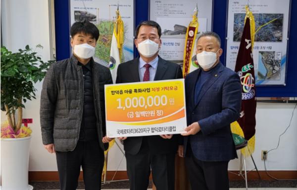 [한국연예축제일보, 유혜경기자] 당진시는 국제로타리3620지구 합덕로타리클럽에서 지난 8일 합덕읍행정복지센터를 방문하여 후원 성금 100만 원을 전달했다고 밝혔다.