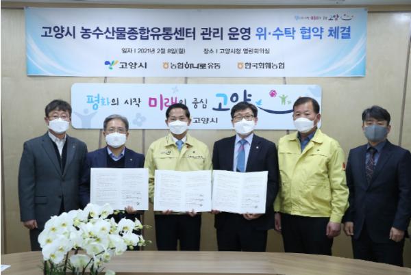 [한국연예축제일보, 안성경기자] 고양시가 지난 8일 시청 열린회의실에서, 일산서구 대화동에 소재한 ‘고양시 농수산물종합유통센터’의 관리운영 관련해, 농협하나로유통(대표이사 김병수) 및 한국화훼농협(조합장 강성해)과 위·수탁 협약을 체결했다.