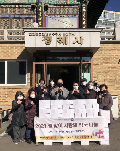 특히 이 떡은 백석1동에 터 잡은 대한불교 조계종 정혜사에서 관내 불우이웃을 위해 매년 설 즈음 보내오는 정성 깃든 음식이다.