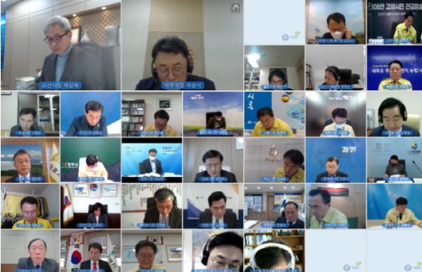 경기도시장군수협의회(회장 곽상욱, 오산시장)는 9일 오전 10시, 협의회장 곽상욱 오산시장을 비롯한 총 30개의 시군이 참석한 가운데 민선 7기 제9차 정기회의를 영상회의로 개최하였다.