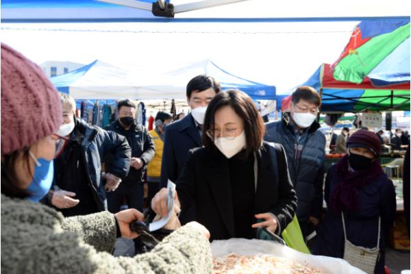 [한국연예축제일보, 유혜경기자] 은수미 성남시장이 9일 설 명절을 맞아 모란5일장을 방문해 상인들을 격려했다.