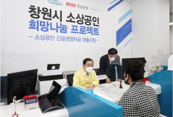 허성무 창원시장은 은행창구 대출 상담원 활동을 펼친 후 “코로나19의 장기화로 우리지역 소상공인 모두 힘든 시간을 겪고 있음에 충분히 공감한다”며 “지역 소상공인이 활력을 찾는 날까지 지원에 최선을 다하겠다”고 말했다.