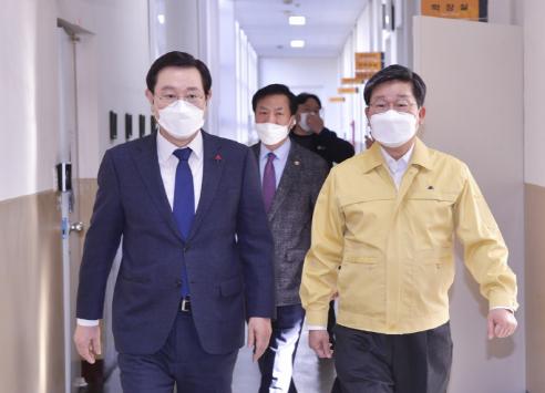 [한국연예축제일보, 유혜경기자] 광주광역시가 2월말 코로나19 예방접종을 앞두고 막바지 준비에 박차를 가하고 있는 가운데, 전해철 행정안전부 장관이 9일 오후 광주를 방문, 코로나19 예방접종 추진상황 전반을 점검하고 관계자들과 간담회를 가졌다.