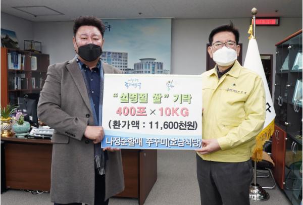 [한국연예축제일보, 유혜경기자] 설 명절을 앞두고 9일 오전, 나정순할매쭈꾸미(대표 나정순)가 동대문구청을 방문해 어려운 이웃을 위한 쌀 400포(10kg/포, 환가액 1,160만 원)를 기탁했다.